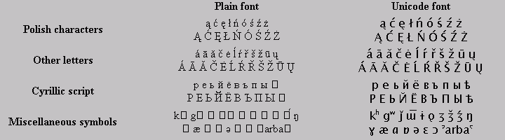 | Plain font | Unicode font | |