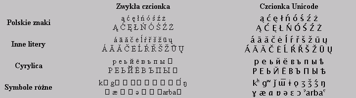 | Zwykła czcionka | Czcionka Unicode | |