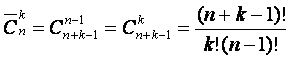 | kombinacje z powtórzeniami | n różnych elementów | k elementów | tak | nie |