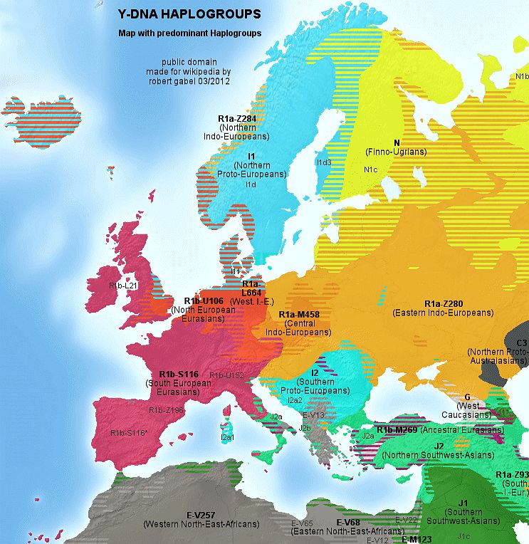 A oto jak wygląda według Wikipedii współczesny rozkład głównych haplogrup w Europie: