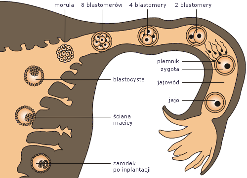 Rozwój zarodka od zapłodnienia do implantacji w ścianie macicy